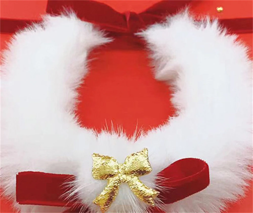 Cute Warm Pet Dog Necklace Cat Christmas Bow Necklace Collar Dog Bib Woven Cat Bell New Year Pet Neck Jewelry Pet Accessories